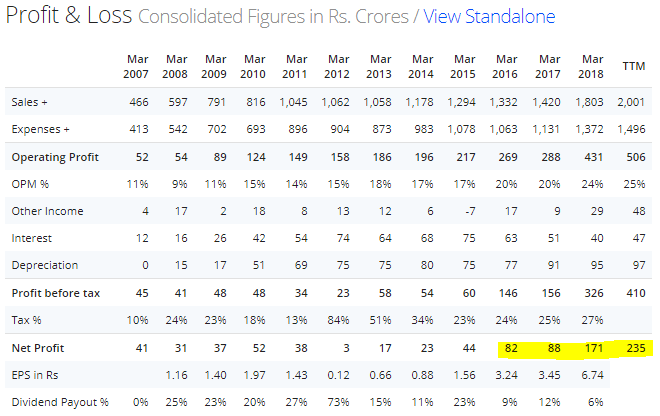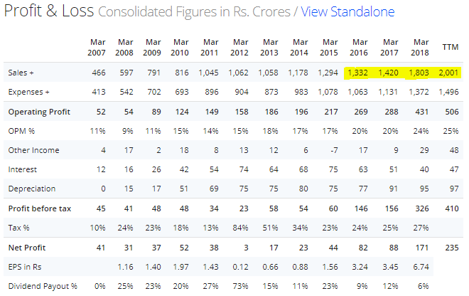 | History of Consistently Increasing Sales, Earnings & Cash Flow | Yes.Recent Year, Revenue Growth 49%, PAT Growth 95%