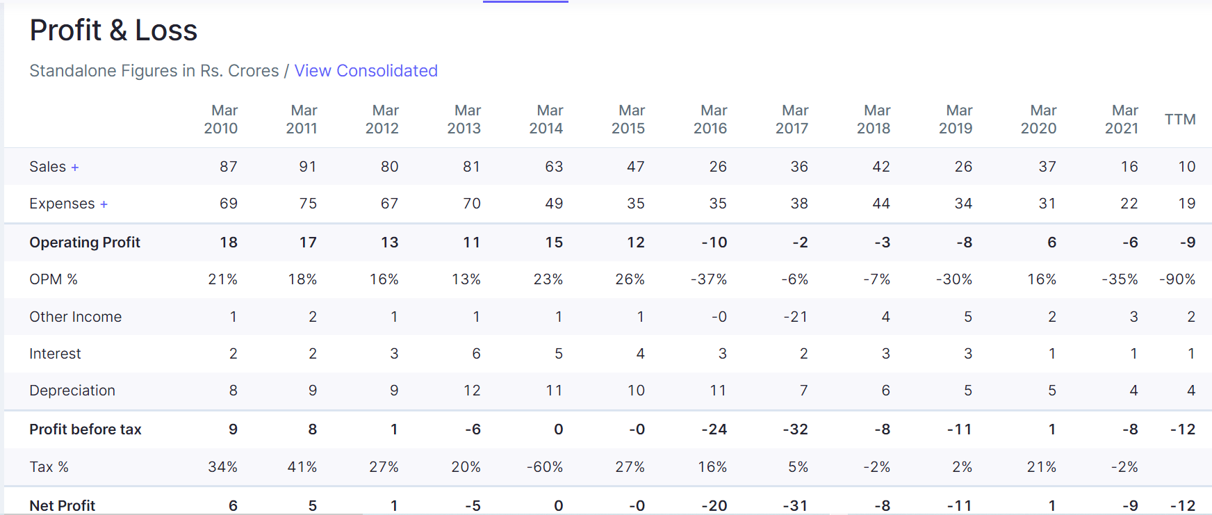 - Company is in Loss